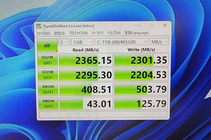 今までのHDDと比べるとデータ転送速度(読込)が21倍速くなったという結果です。